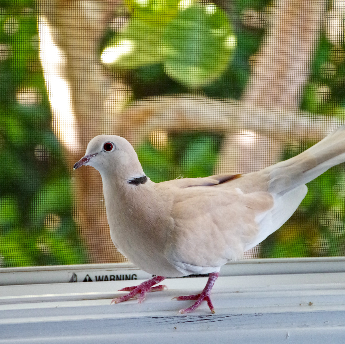 I named the dove “Buffy” after intrepid vampire slayer, seeing as she survived an attempt on her life, but kept her wits and good attitude about her. I thought she was pretty brave to approach a person and bulldoze her way into a home. She is a friendly, cheerful bird and talks at me all the time.